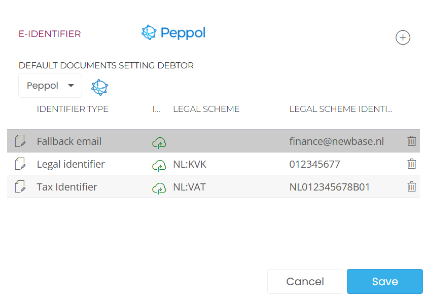 It is wise to register all the known e-identifiers of your own company and the debtor or creditors in Newbase.
