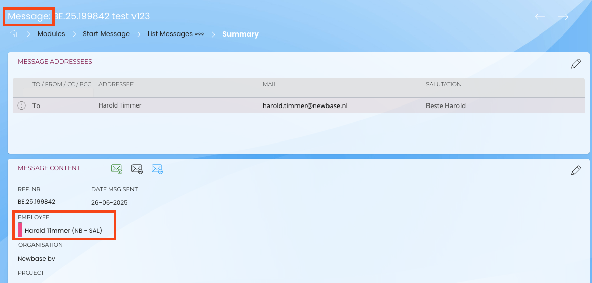 For your information: when you create a message from a document, the document is saved as a PDF in the location you have specified on SharePoint. When you send the message, this document is retrieved again from SharePoint. This location is linked to Newbase.
