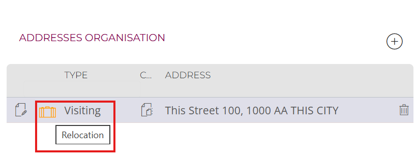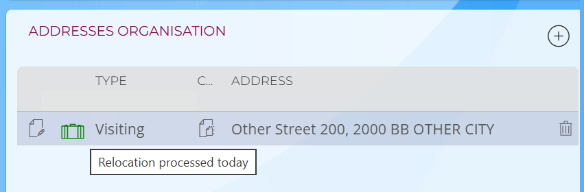 Address and reachability relocation data can be entered for the modules Organisation, Contact, Person and HRM.
