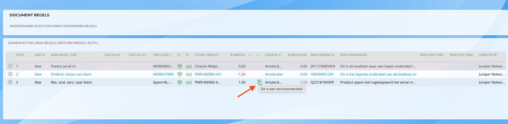 Indien er in Newbase wordt gewerkt met reserve onderdelen* (abonnement Service) kun je onderstaand icoon in de regel zien of het een reserve onderdeel betreft.