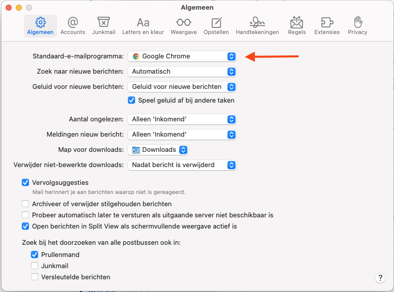 Nu moet je email als default worden ingesteld binnen de gekozen browser. In dit voorbeeld Google Chrome.