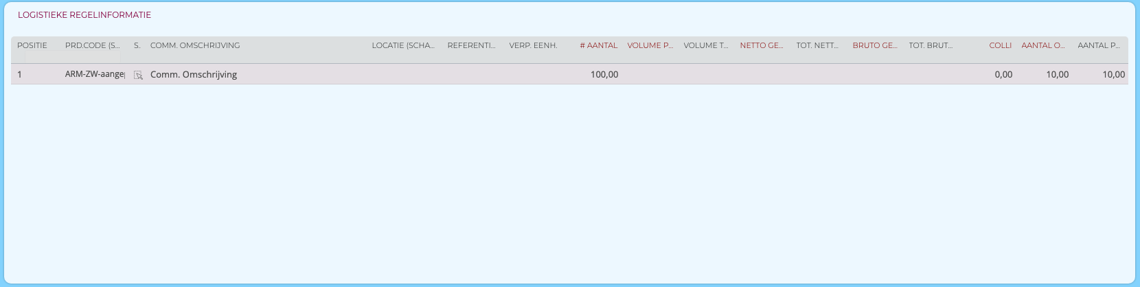 - Logistieke uitgebreide informatie