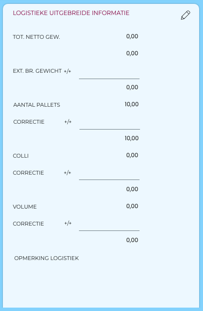 Logistieke uitgebreide informatie